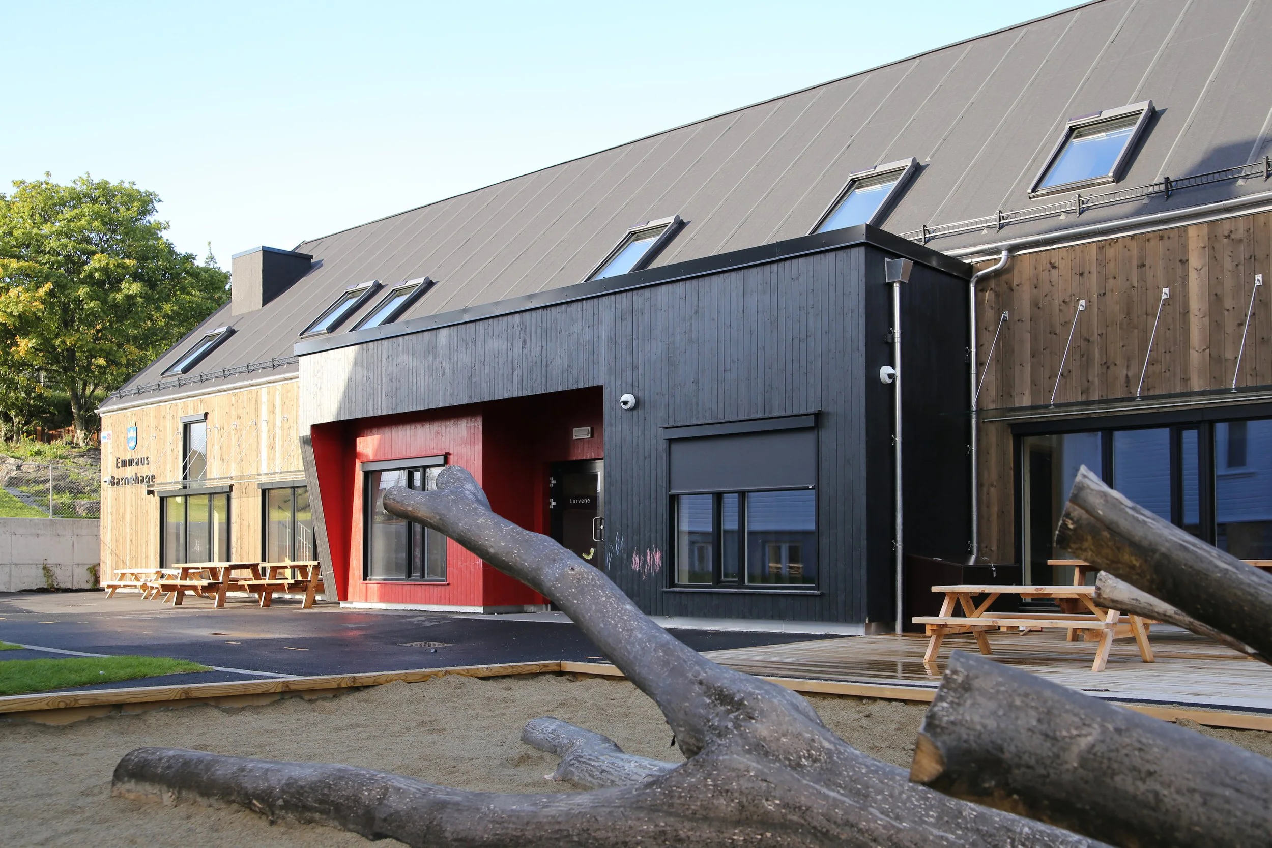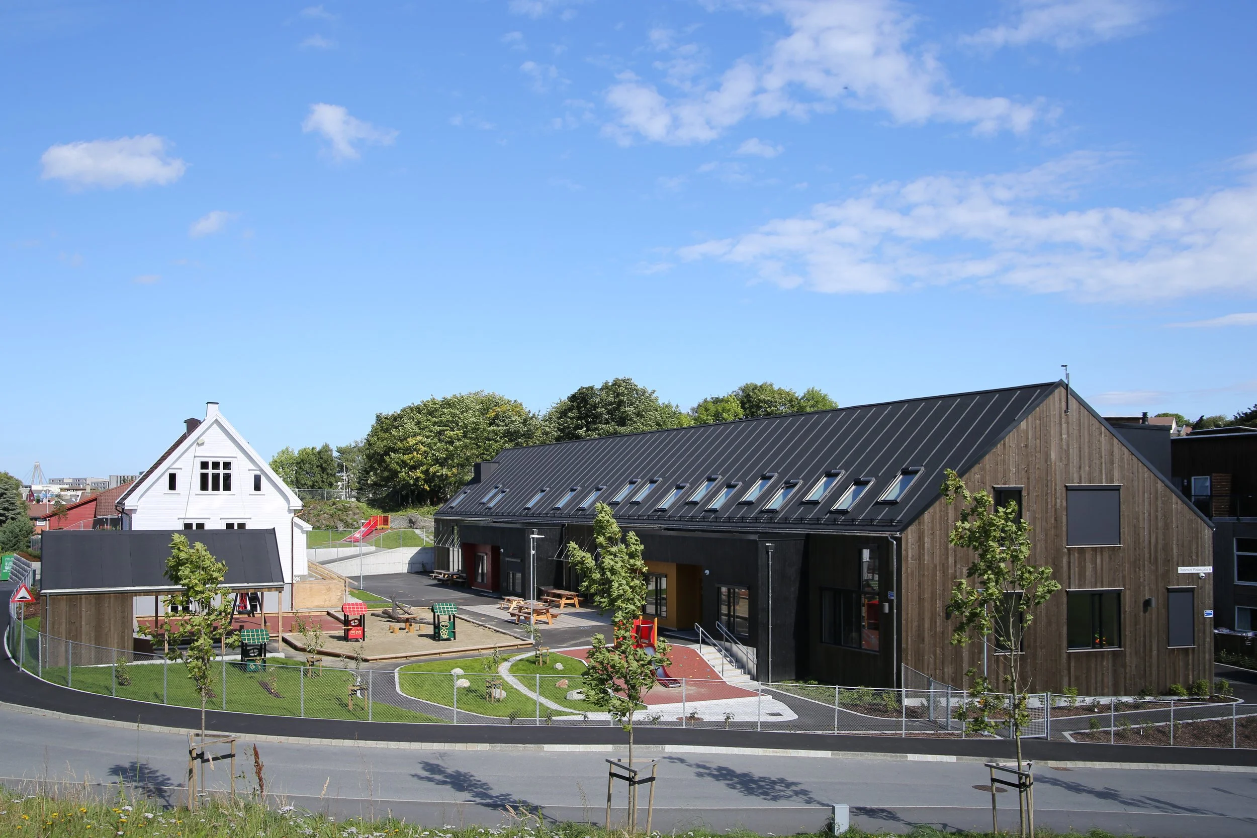 Inneholder fem avdelinger hvorav en “naturbarnehage”, samt personalavdeling, fellesareal og et spennende uteareal for lek og opphold.