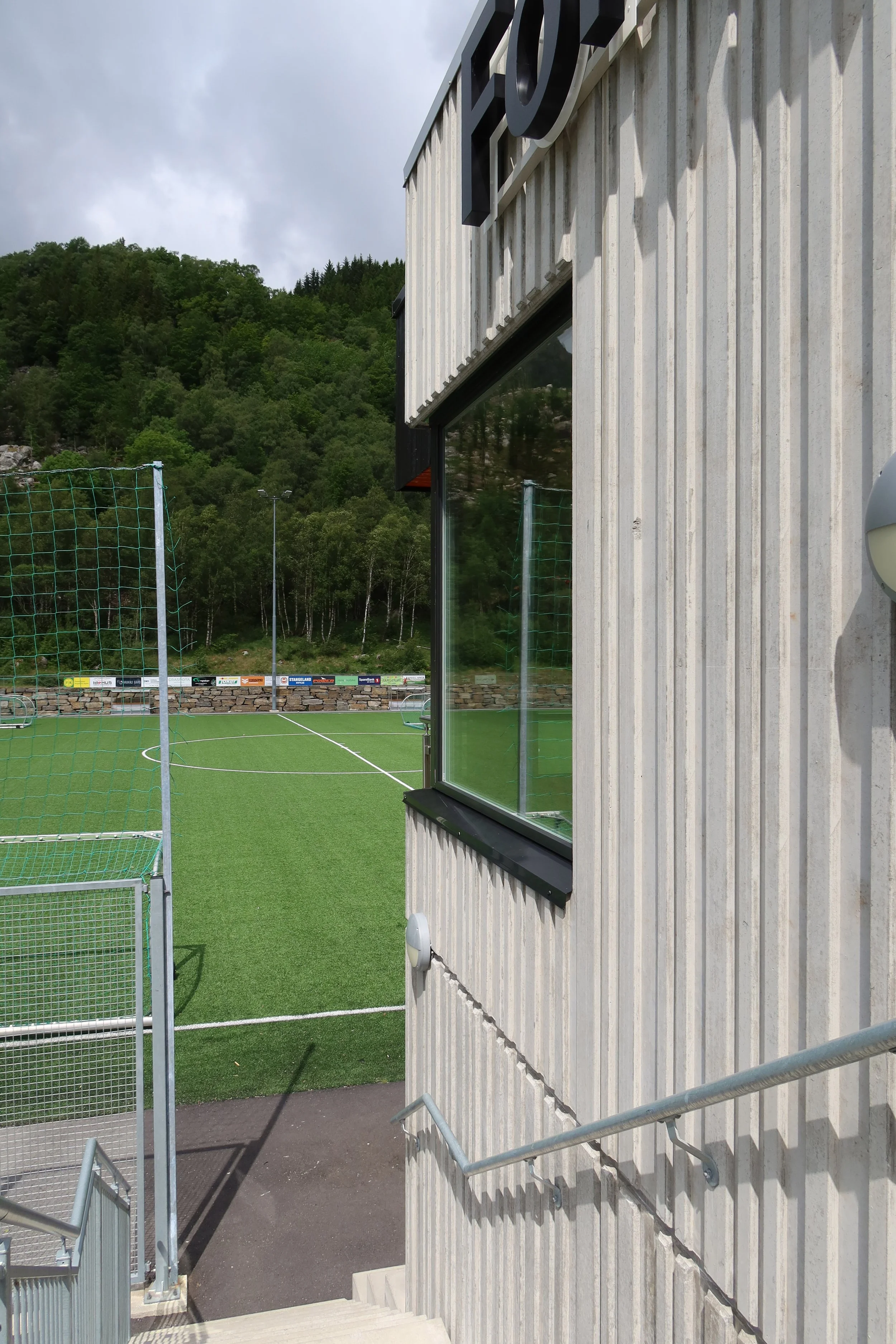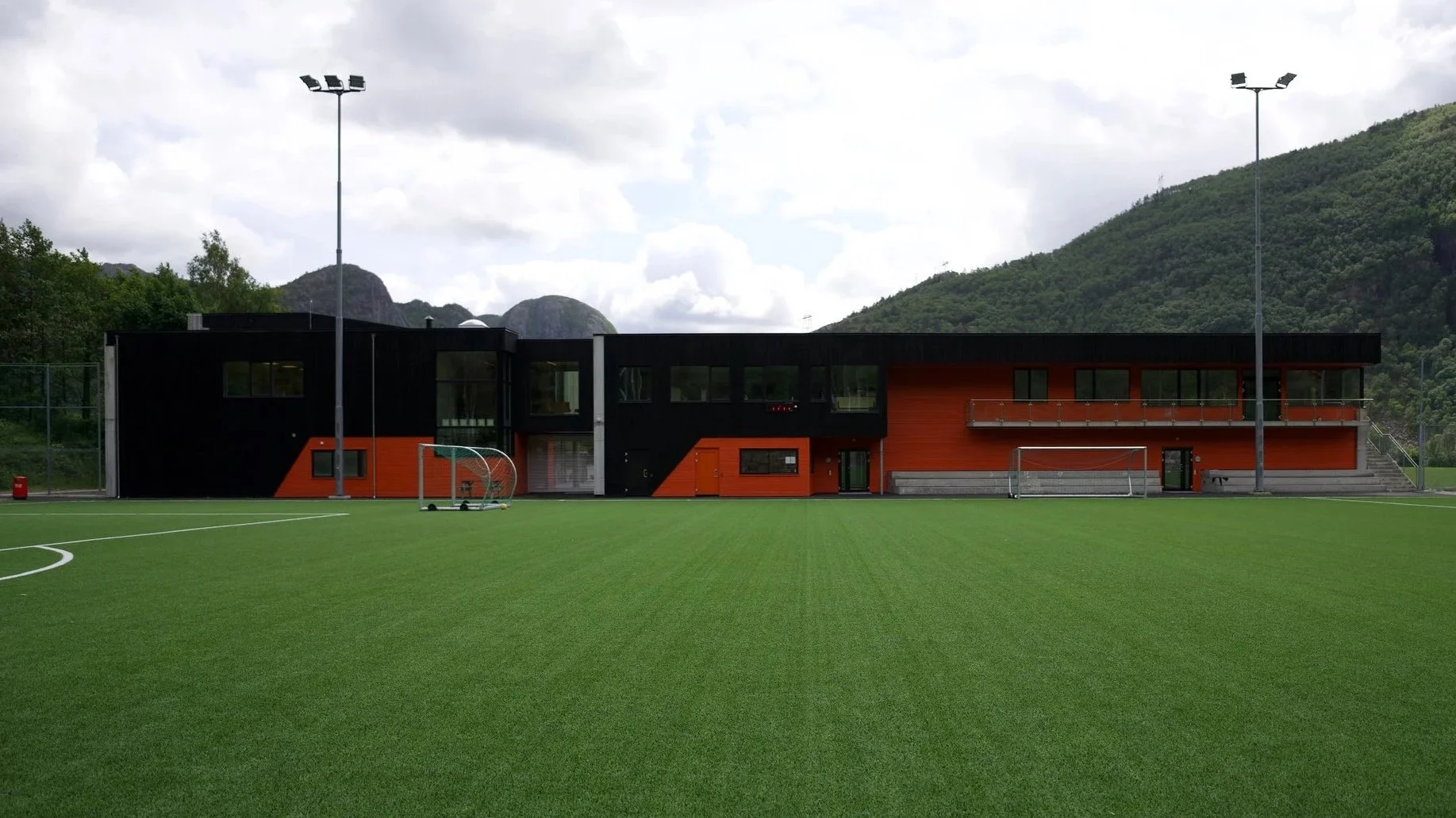 Nybygg tilknyttet barne- og ungdomsskole med garderober, klubblokale og kulturskole med scene og undervisningsrom.