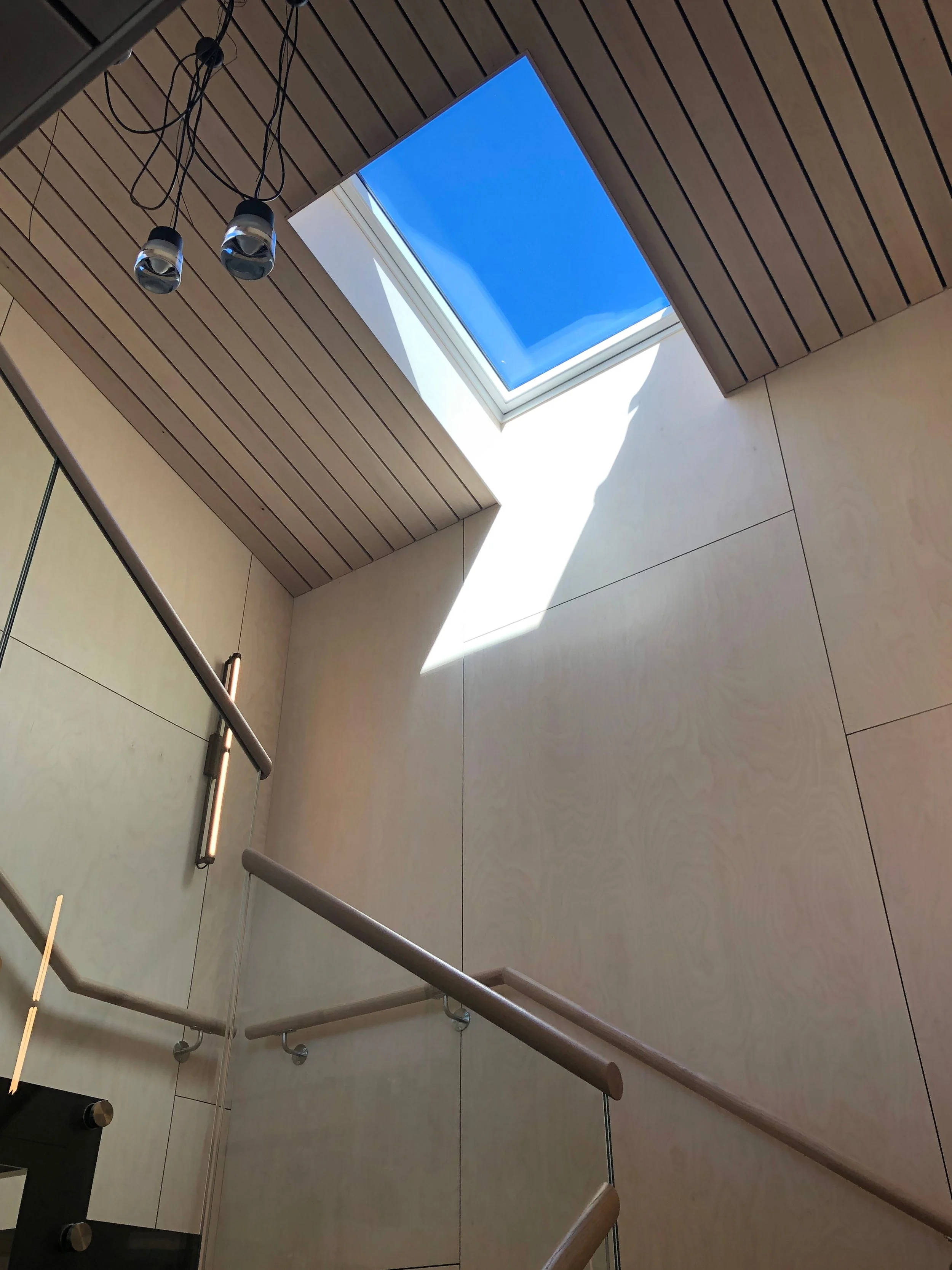 Gjennomtenkt materialbruk og lysinnslipp fra uventet hold.